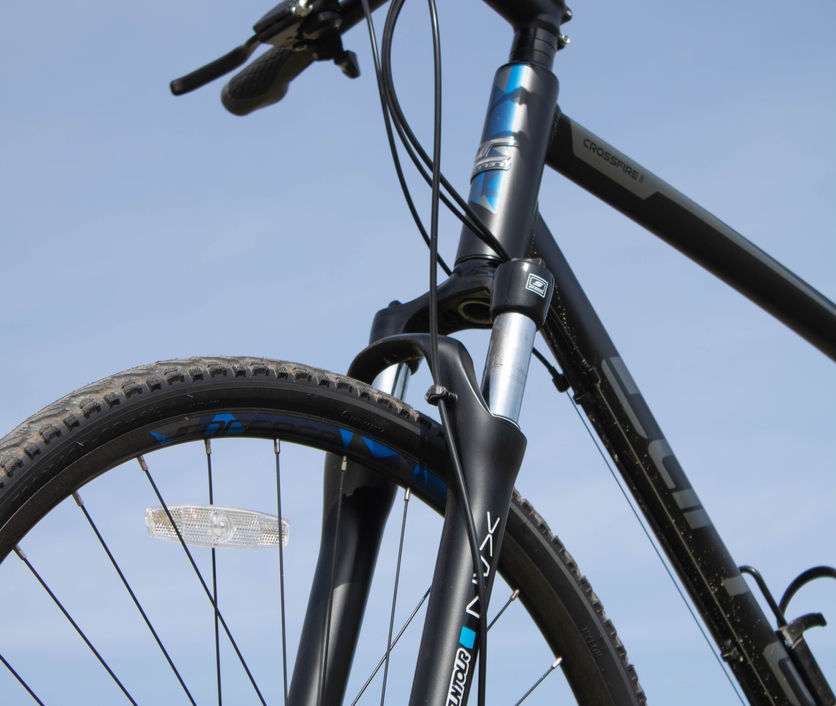 The Carrera Crossfire 2 Mens Hybrid Bike - Black has all the features of the Crossfire 1 with some fantastic added benefits. Also featuring a new design, the suspension fork is extended in this model giving you advanced handling and allows you to tailor your level of comfort whether you’re on the road or on the canal path. A larger number of gears makes climbing hills even easier as well as helping you find the right gear when you need it. The Carrera memory foam saddle allows you to stay cycling comfortably for longer. And, if you’re really upping your cycling game, the mechanical disc brakes give you consistency, rain or shine. Take your pick from a vibrant red or cool blue paint finish
